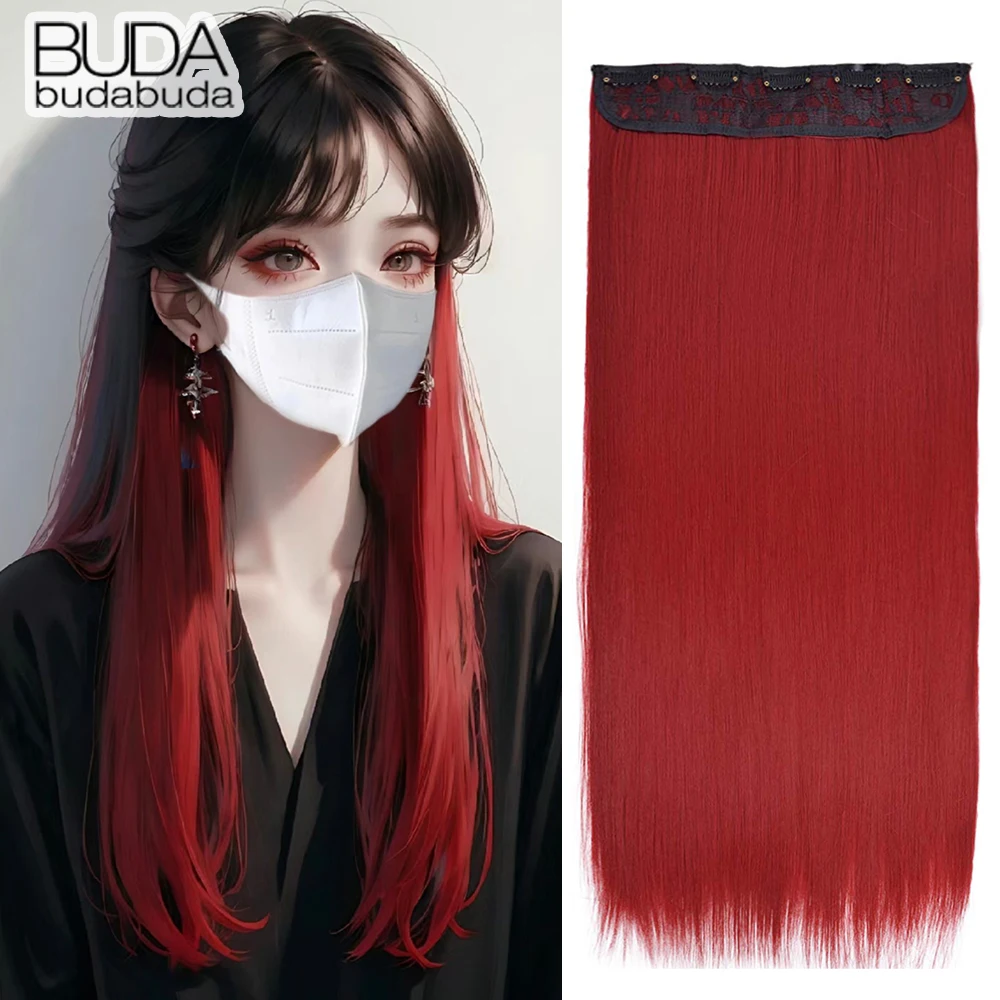 22 Inch Synthetic One Piece 5 Clips Natural Hair Extensions Long Straight High Temperature Fiber Black White Red Hairpiece BUDA