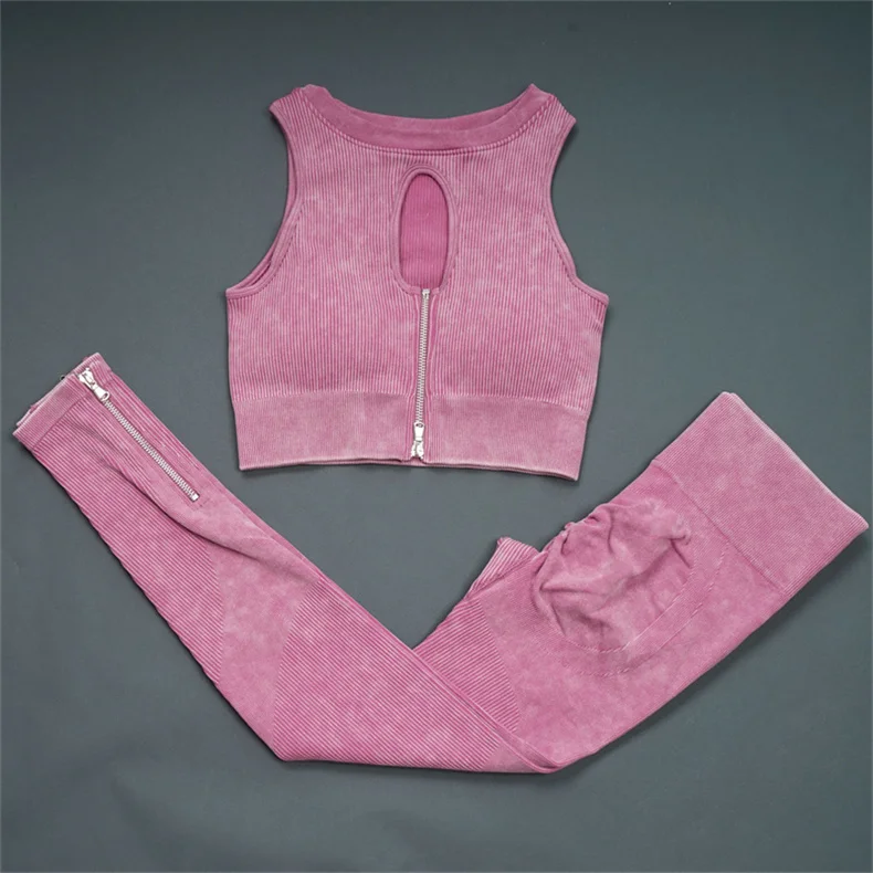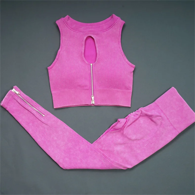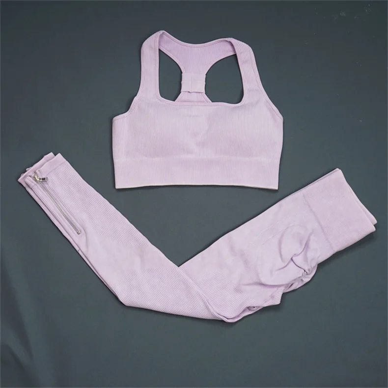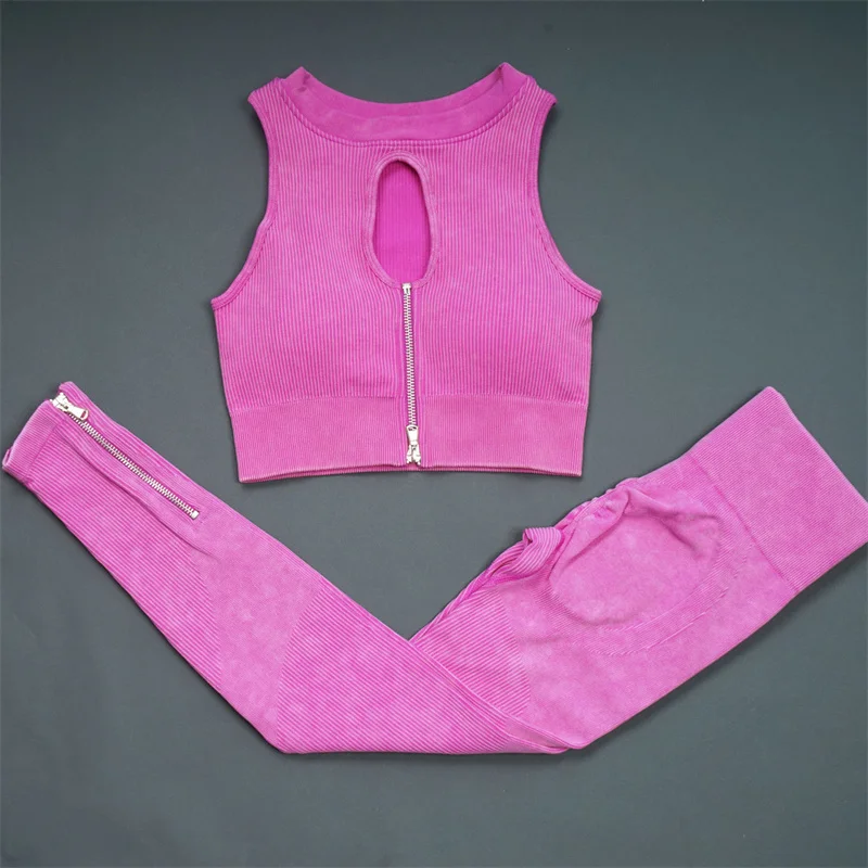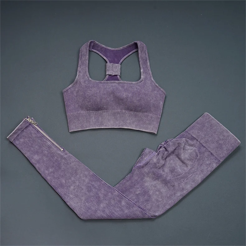 ABOUT:FITNESS SEAMLESS YOGA SET RIBBED SPORTS SUIT