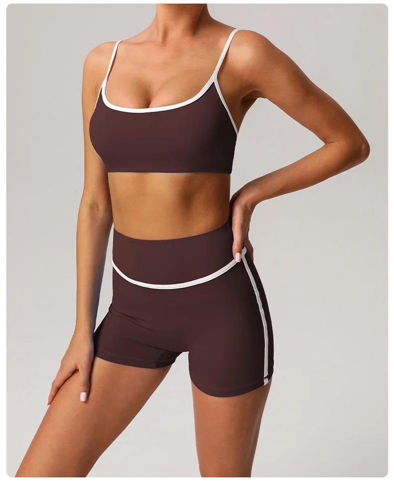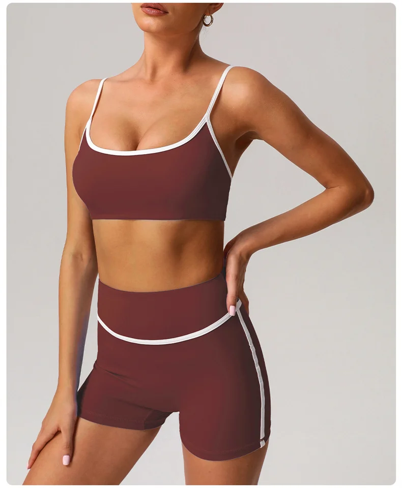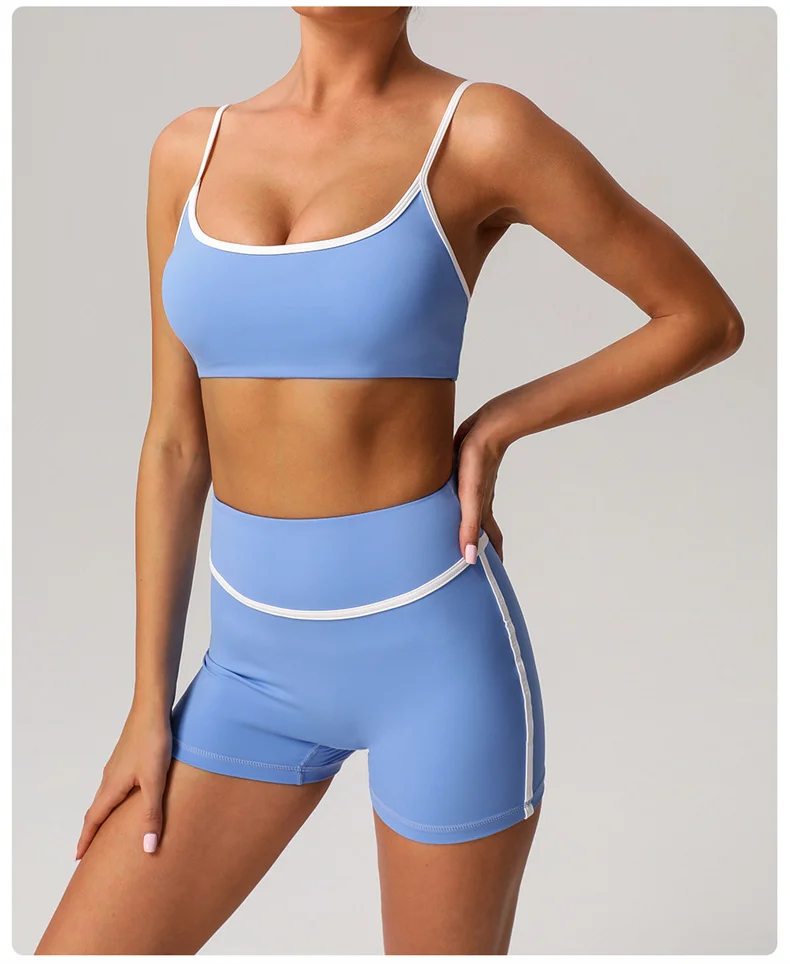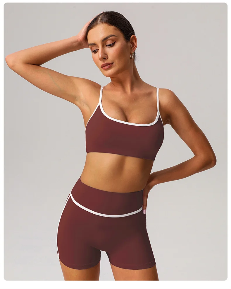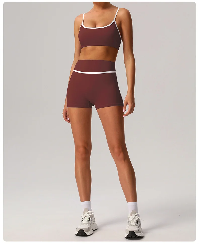 ABOUT:SHORTS YOGA BRA SETS CONTRASTING COLORS SEXY FITNESS SPORTSWEAR